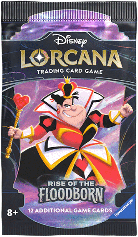 Booster packs contain twelve random cards from Disney Lorcana: Rise of the Floodborn. Use booster packs to build and customize your deck with abilities and characters beyond those found in starter decks.